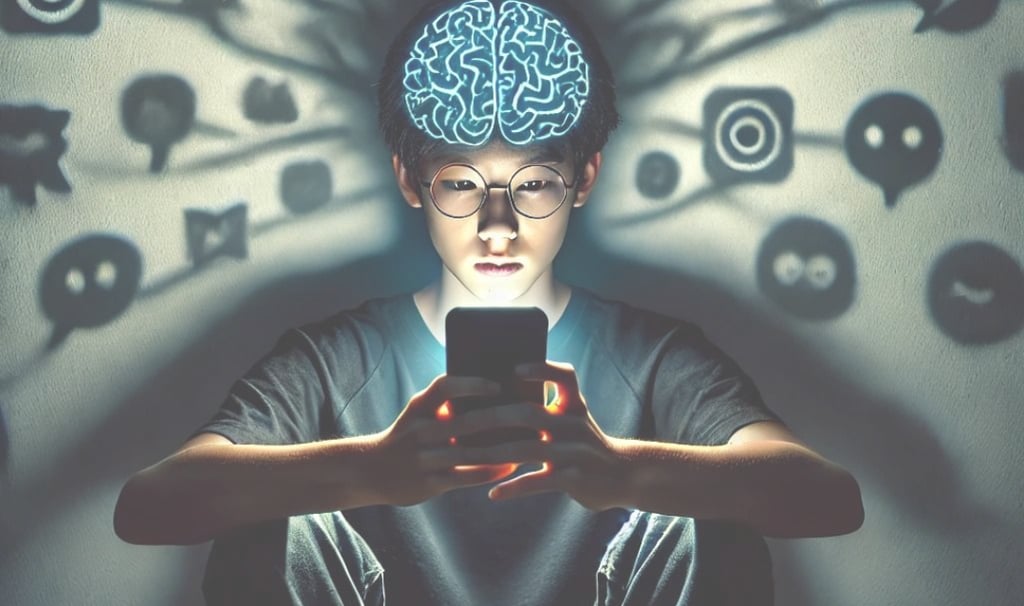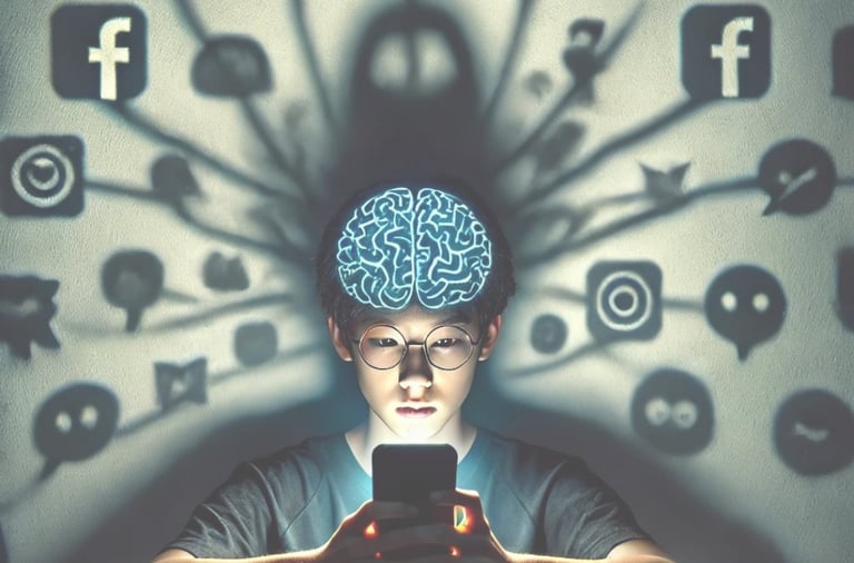 Uso excessivo de tecnologia e redes sociais: Rolagem infinita, busca por curtidas e necessidade de estar sempre conectado.